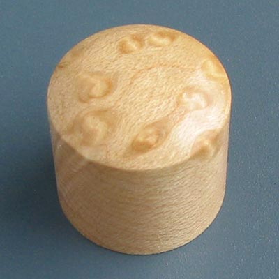 Solid birdseye maple knobs with metal insert and locking side setscrew, 3/4" tall x 3/4" diameter and 6mm or 1/4" internal diameter.